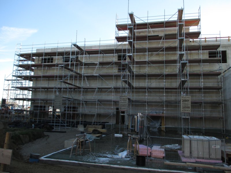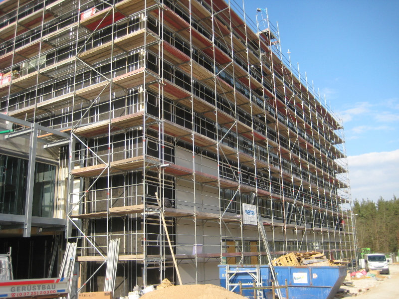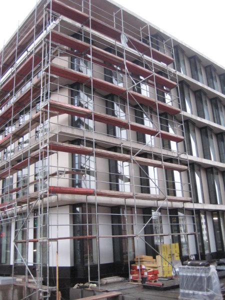 ca. 10.700 m² Fassadengerüste LK4, W09 (zzgl. komplett mit 32-er Konsolvorlage) und Hängegerüst am Institutsneubau