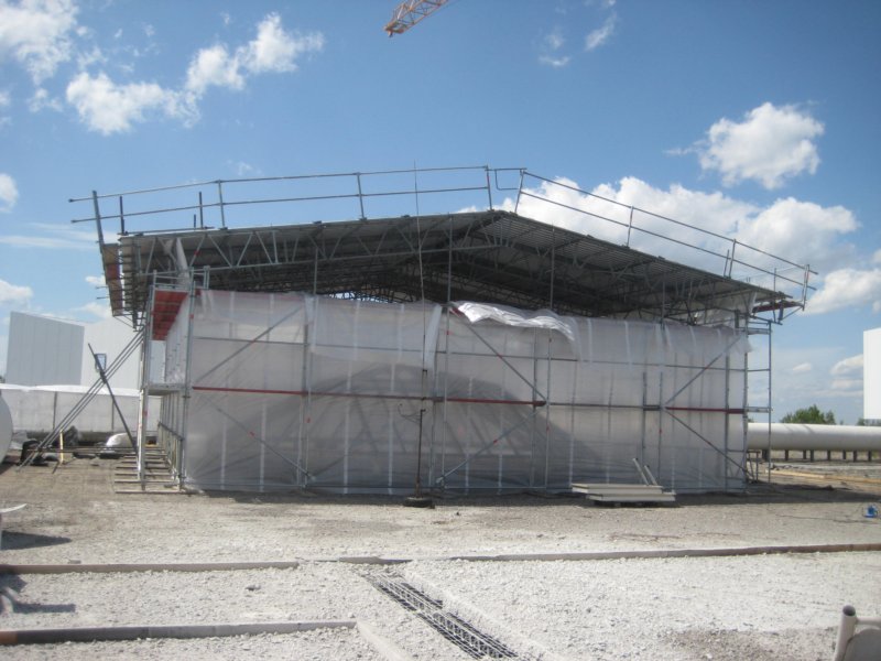 ca. 2200 m innerer Seitenschutz, diverse Raumgerüste im Innenbereich, Überbrückungen, Treppenaufgänge, 2 t Personen-/Lastenaufzug